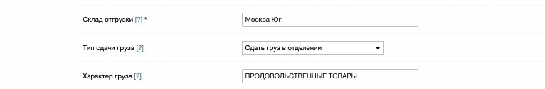 Обязательное поле, если отгрузки проводятся от терминала ПЭК.