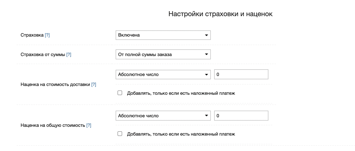 Опция позволяет включать наценки только при включенной услуге Наложенный платеж