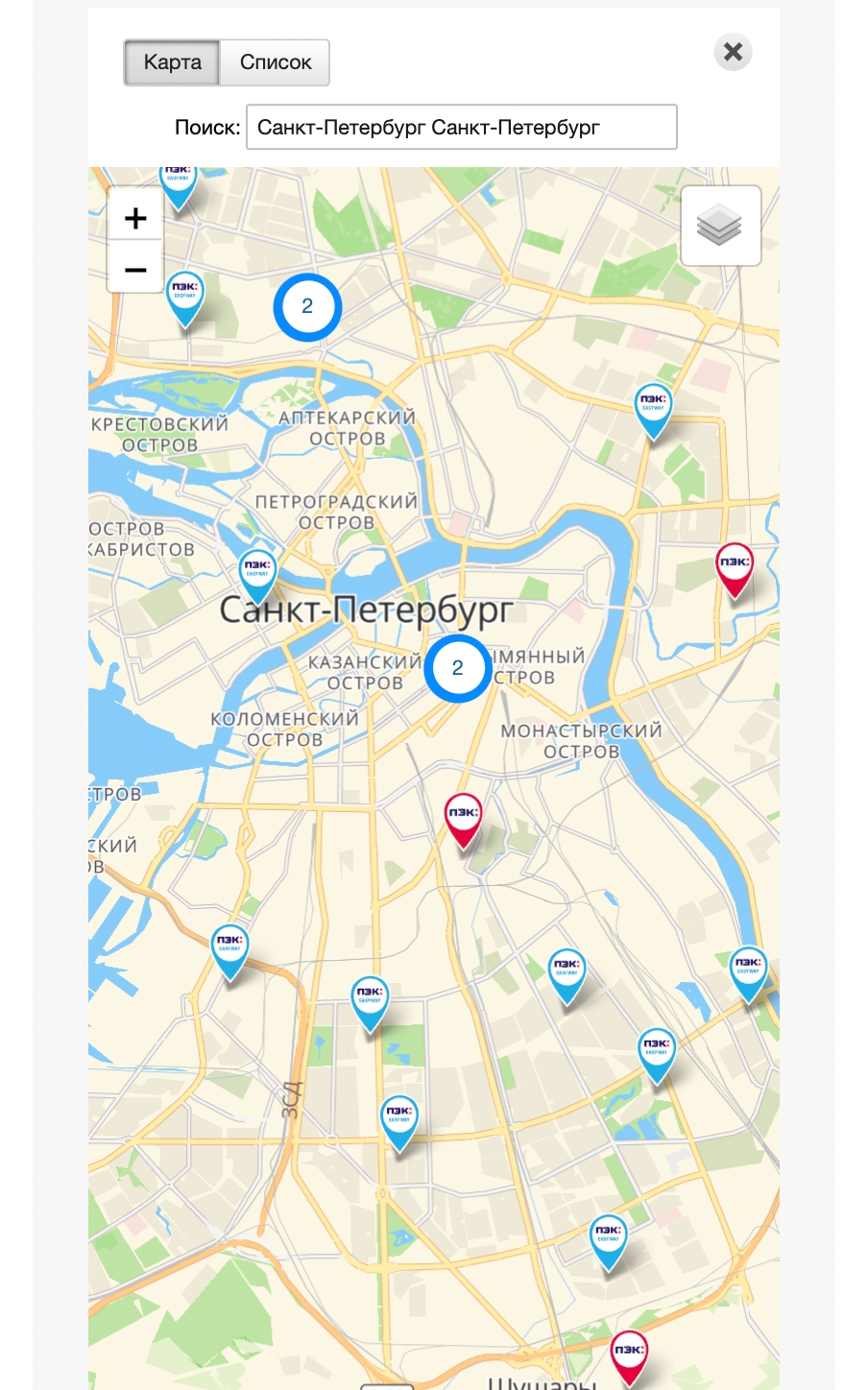 Выбор ПВЗ (терминала)