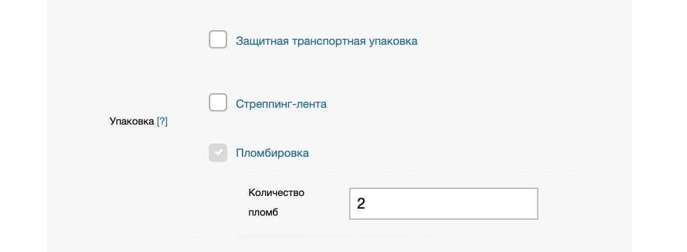 Подраздел позволяет включить услуги дополнительной упаковки груза. С общими требованиями к упаковке груза можно ознакомиться на сайте ПЭК