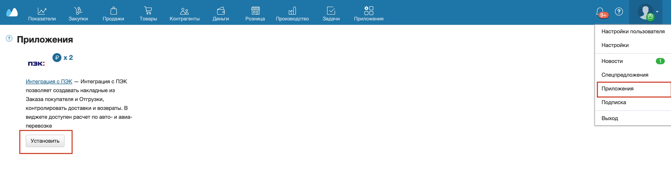 ПриложенияВ открывшимся списке найдите интеграцию с ПЭК